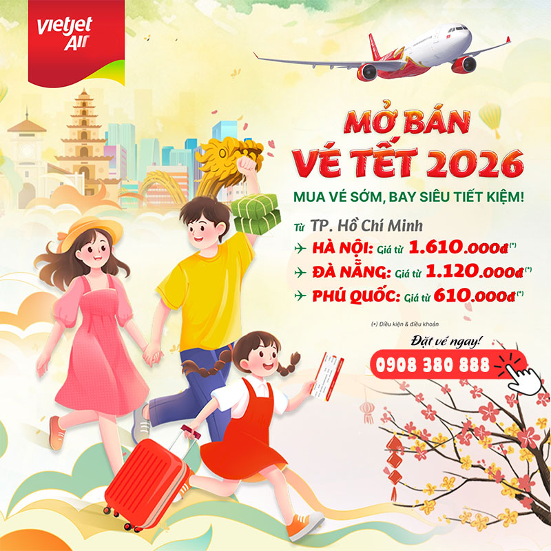 Chính thức mở bán vé Tết Vietjet: Càng đặt sớm, càng tiết kiệm – Liên hệ Việt Mỹ!