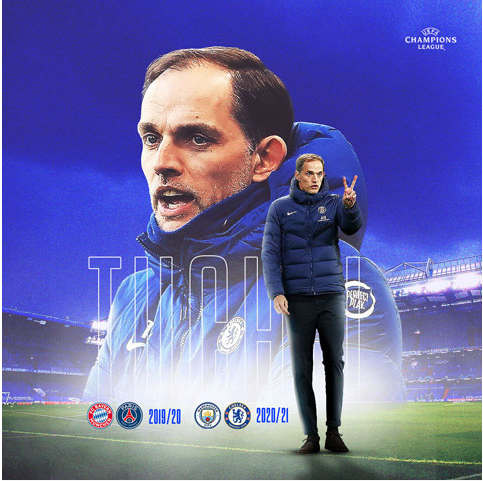 Ở trận bán kết lượt về Champions League 2020/21 giữa Chelsea vs Real, The Blues đã giành chiến thắng với tỷ số 2-0 và vào chung kết bằng tổng tỷ số thắng 3-1. Với việc đưa Chelsea vào chung kết Champions League, Tuchel trở thành HLV đầu tiên giành vé tới chung kết giải đấu danh giá nhất châu Âu trong 2 mùa liên tiếp với 2 CLB khác nhau.