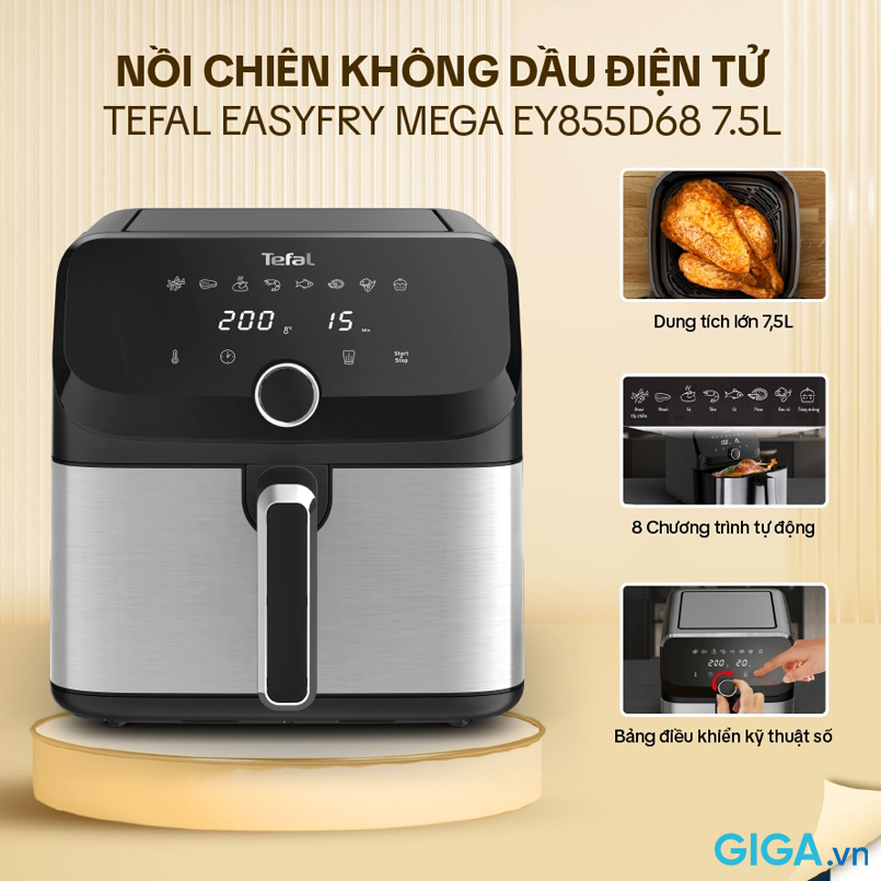 Giga Digital – Địa chỉ bán nồi chiên không dầu điện tử Tefal EasyFry Mega EY855D68 7.5L giá tốt