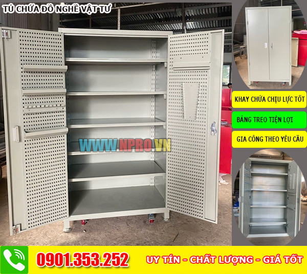 + Tủ được thiết kế hệ thống bảng treo đồ nghề cài được nhiều loại móc khác nhau