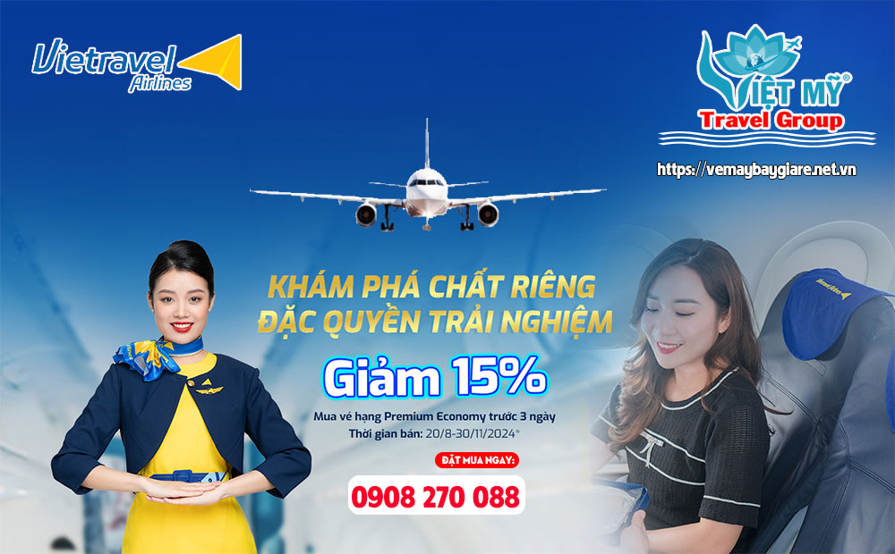 Ưu đãi đặc biệt từ Vietravel Airlines: Giảm 15% khi mua vé hạng Premium Economy