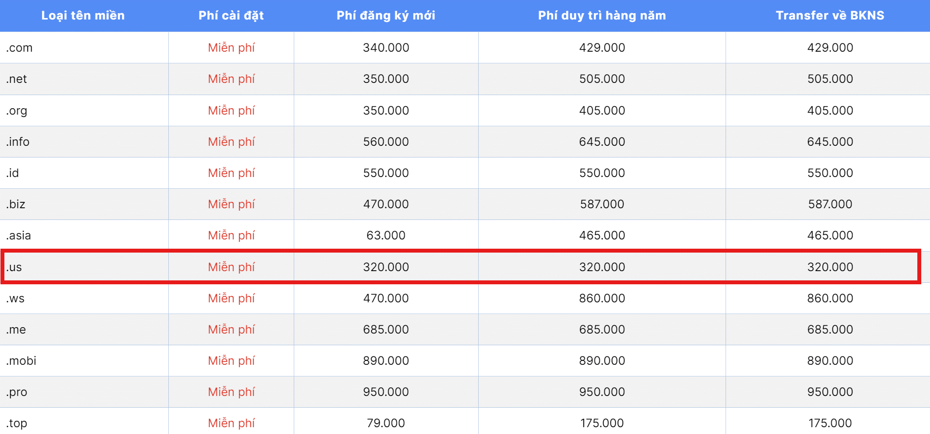 Một bảng giá tên miền rõ ràng sẽ giúp bạn tránh các chi phí ẩn.