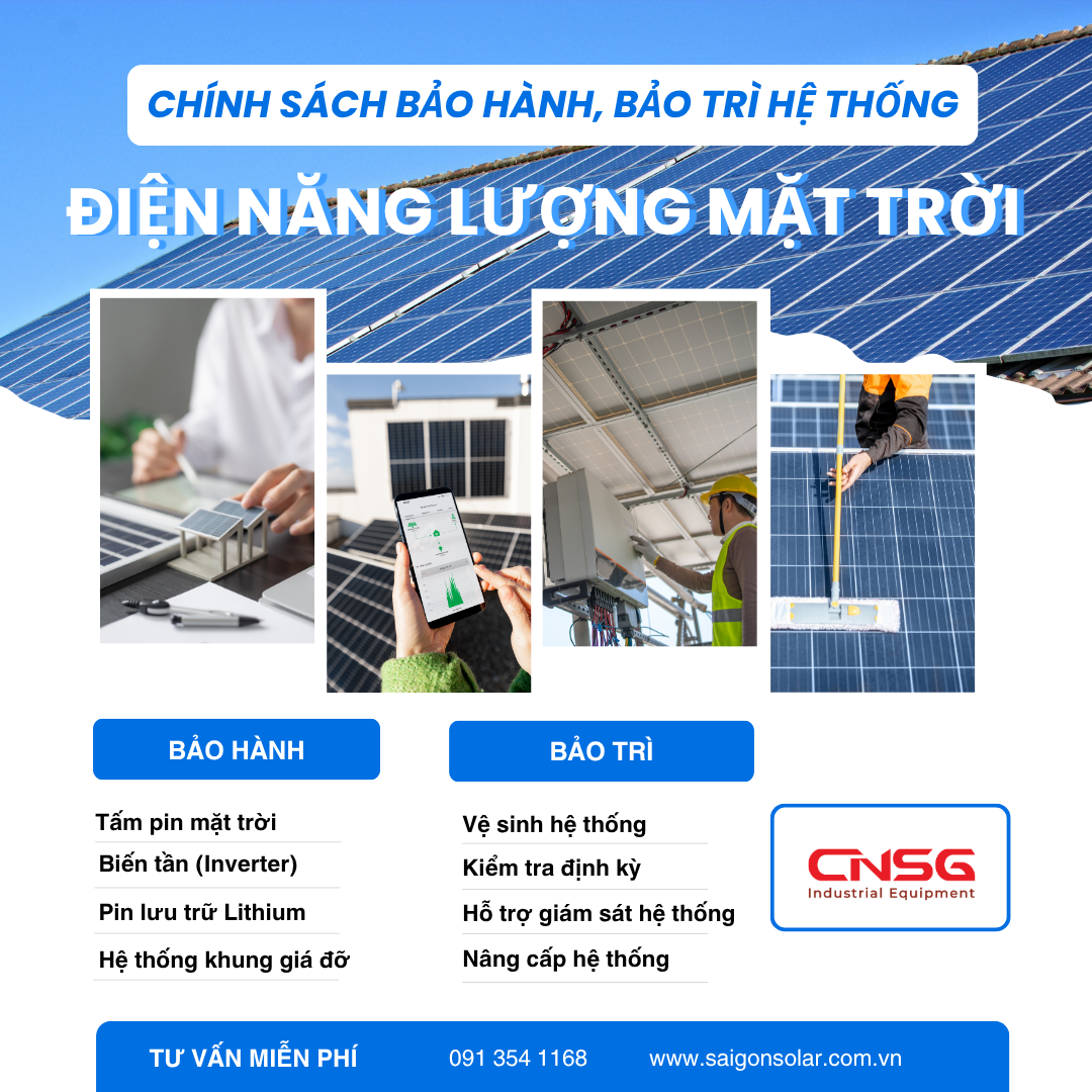 Khi đầu tư vào hệ thống điện năng lượng mặt trời, khách hàng không chỉ quan tâm đến chất lượng sản phẩm mà còn đặc biệt chú trọng đến dịch vụ hậu mãi sau lắp đặt. Hiểu rõ điều đó, Saigon Solar mang đến bạn các chính sách bảo hành – bảo trì toàn diện, giúp khách hàng an tâm trong suốt quá trình sử dụng.
