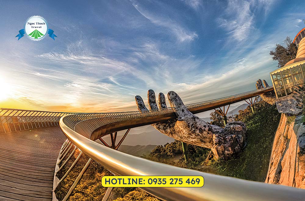 Điểm đặc biệt của cây cầu chính là hai bàn tay khổng lồ được thiết kế như đang nâng đỡ cây cầu từ lòng núi, tạo cảm giác như một con đường vàng lơ lửng giữa trời. Công trình được khởi công năm 2017 và chính thức mở cửa đón khách vào năm 2018.