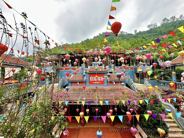 Quần thể di tích Den Chua Thac Bo gồm hai đền chính nằm ở hai bờ trên lòng hồ thủy điện Hòa Bình