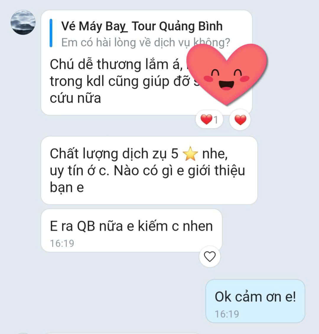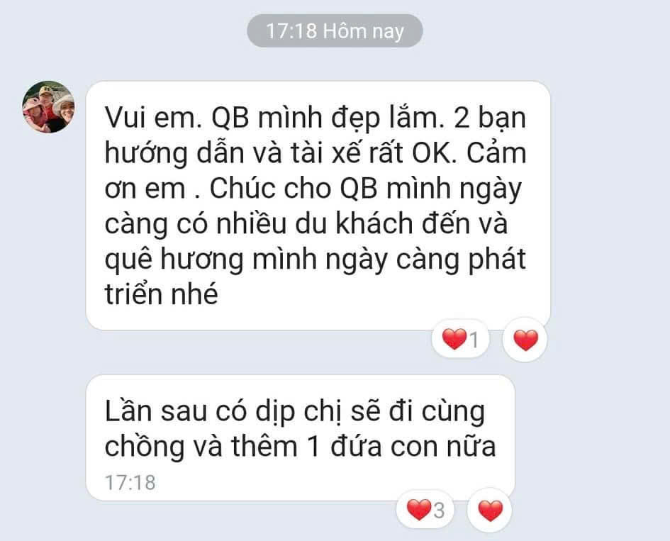 – Quảng Bình GO, cam kết giá là đúng chuẩn nhất trên địa bàn. Các khu vực khác thì chúng tôi không biết, nhưng Quảng Bình mảnh đất khá là nhỏ bé. Hầu hết các dịch vụ đều gần nhau cả. Vì thế, chúng tôi cam đoan là đúng chuẩn nhất thôi nhé.
